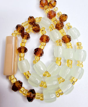 Think about where you want to wear the beads. Underneath your clothes, around your navel? With a bikini, draped low at your bikini bottoms? With a crop top, sitting about your pants? Choose your size accordingly. Clasps are a popular option for those that want to remove their waist beads.
