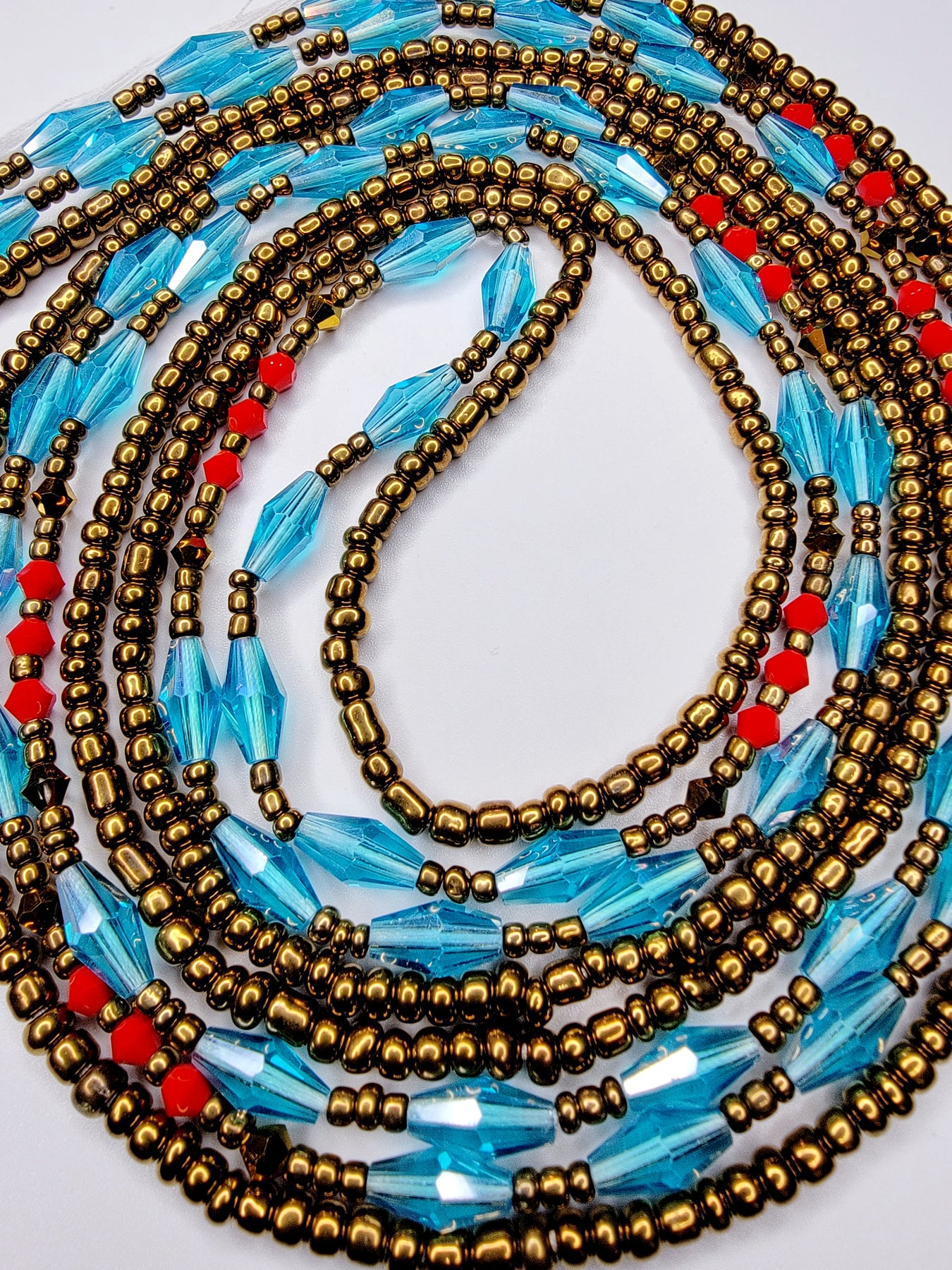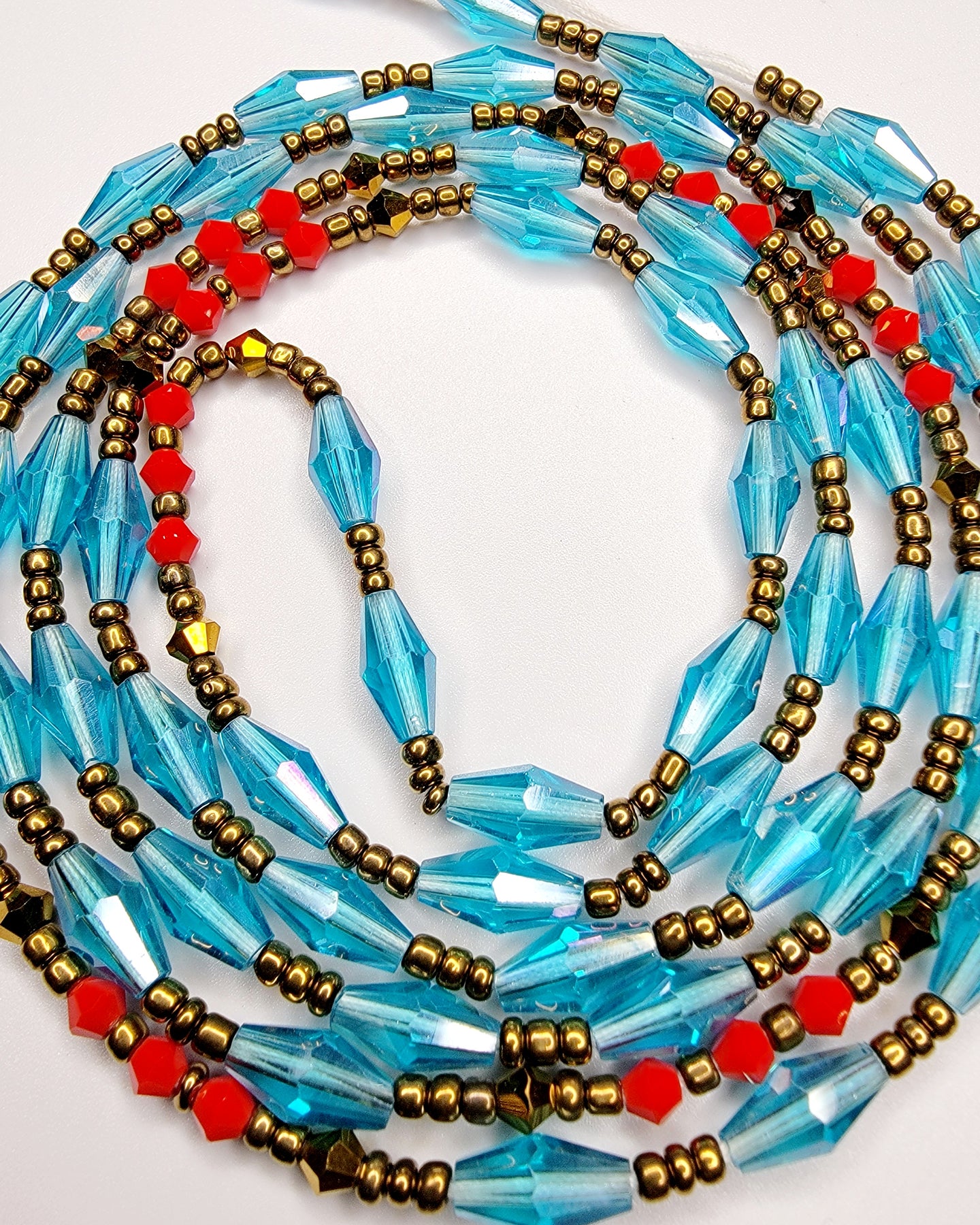 Think about where you want to wear the beads. Underneath your clothes, around your navel? With a bikini, draped low at your bikini bottoms? With a crop top, sitting about your pants? Choose your size accordingly. Clasps are a popular option for those that want to remove their waist beads.